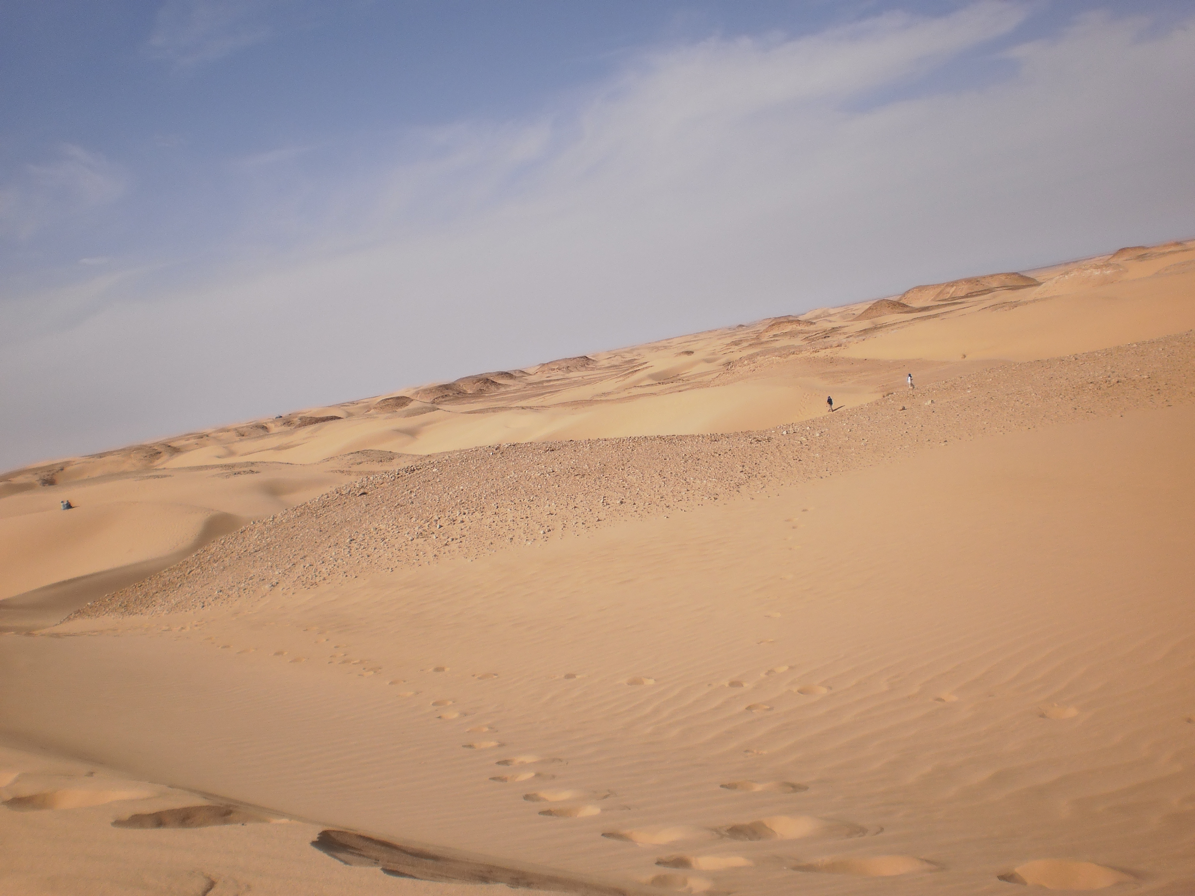El ultimo día, cuando escuché el adhan, me envolví en la manta y salí a ver el amanecer. Fui a la parte alta del campamento, al sur. Allí estaba Endika, envuelto también en una manta. Nos quedamos sentados en una especie de cubo de cemento, mirando la tierra reseca La hammada no es un desierto con médanos de arena fina y brillante. Es tierra árida y roca pelada. No hay un solo árbol, ni un pájaro, nada.