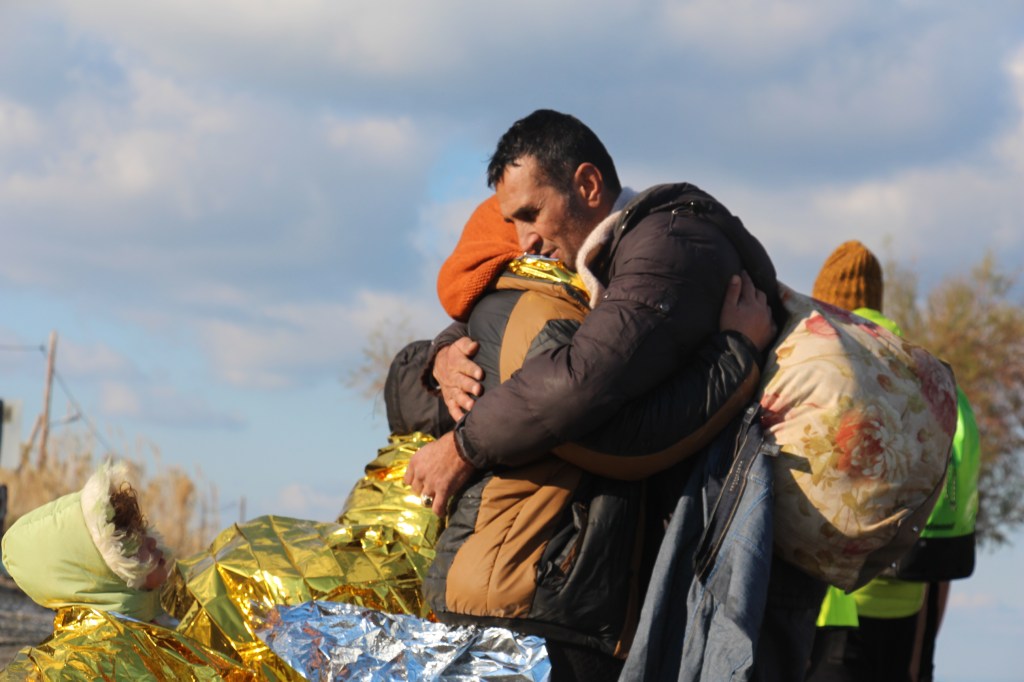 Me muestra unas fotos que sacó algunos días antes, de una balsa que llegó con refugiados sirios. Algunos caminaban con muletas, otros estaban vendados, o muy débiles. Llora cuando lo recuerda.