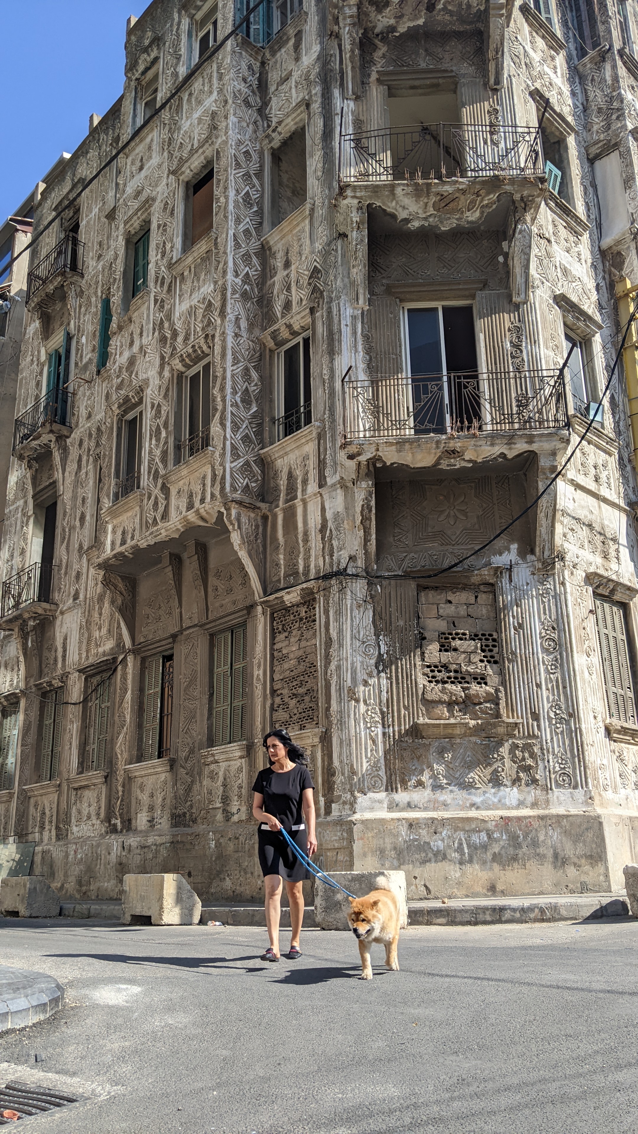 La gran explosión del puerto, en agosto de 2020, arrasó con el barrio de Bar Mikhael y edificios de toda la redonda todavía muestran los daños. Pocos han sido reconstruidos, algunos están en obra, otras solo tienen andamios, la mayoría parecen haberse vuelto a ocupar sobre las ruinas, en las que cuelgan largas hileras de ropa. Bajo una arcada descascarada, entre escombros y cristales rotos, dos señoras beben vino como si no pasara nada.