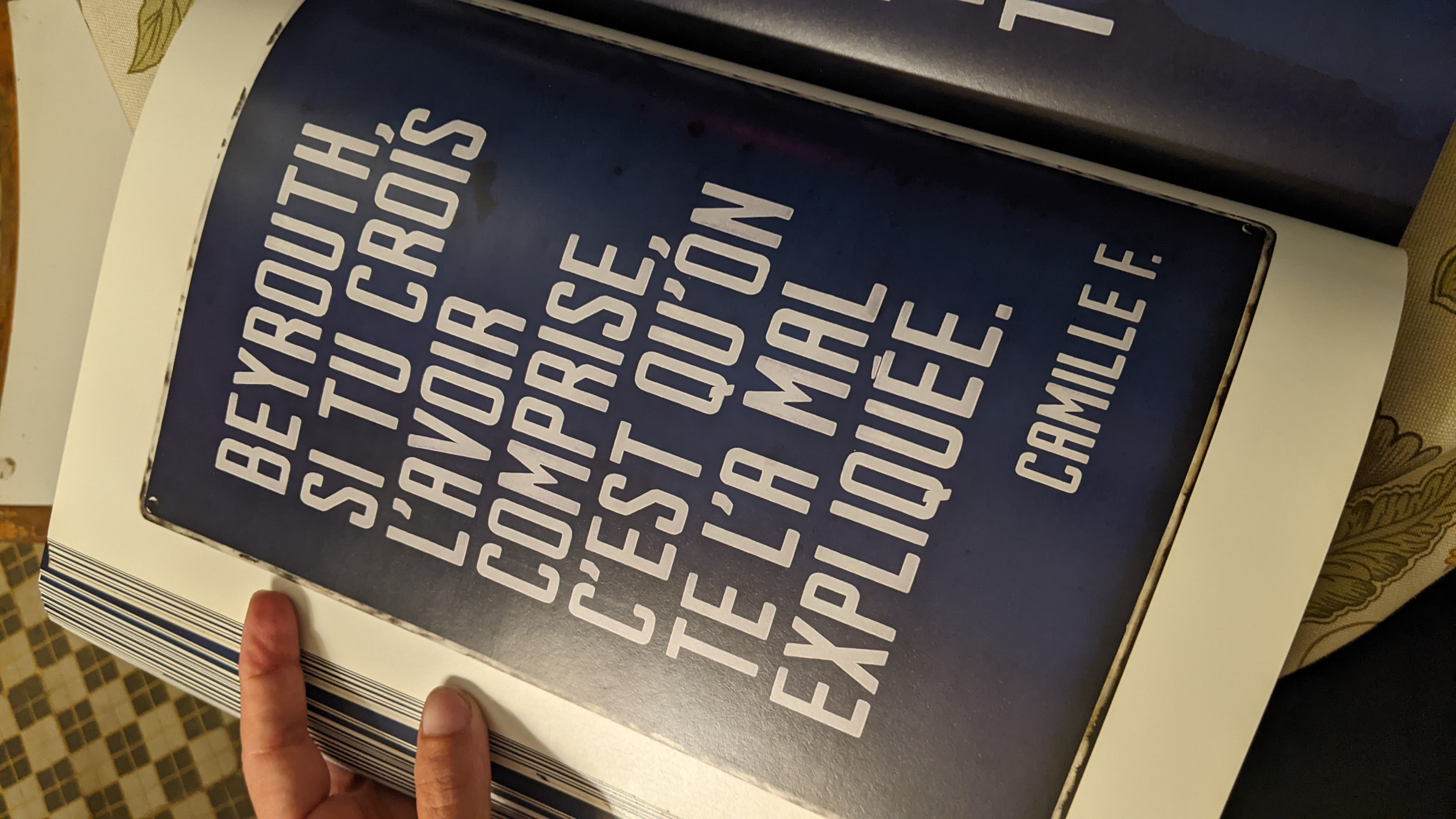 Escribo desde un hostal en Beirut, en el barrio artístico de Gemmayzeh. La ciudad parece estar a punto de derrumbarse. Portales que penden de una viga temblorosa, edificios con la fachada completamente destrozada, ventanas señoriales con todos los vidrios rotos, cubiertos algunos con lonas, otros dejando al descubierto viejos palacios descascarados y convertidos en refugio de desplazados.