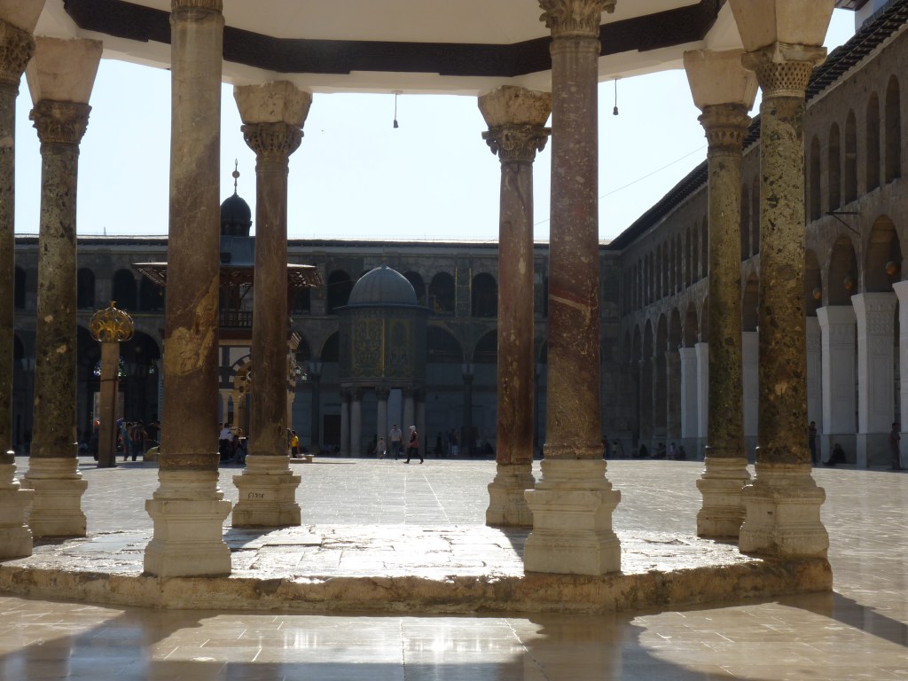 Busco refugio del calor agobiante de Damasco en la mezquita de los Omeyades. Me paso ahi la tarde, leyendo. En otra época la mezquita estaría llena de turistas sacando fotos, pero desde hace cinco meses los turistas desaparecieron. Casi todos los extranjeros desaparecieron y los que quedan…